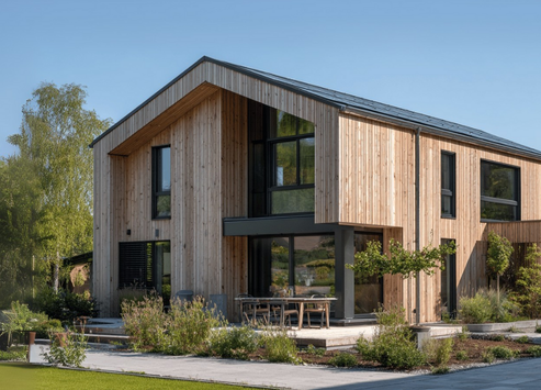 Individuelle Ausführungsplanung in Holz‑ oder Massivbauweise für gesundes Raumklima und Werterhalt.